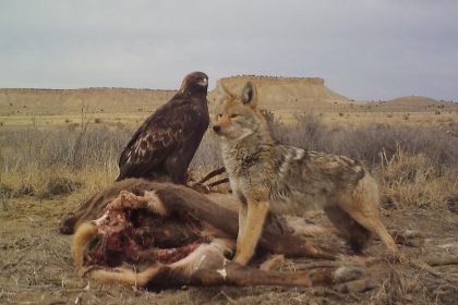 The Unlikelycapturing L titan of Wildlife The depicted image of a coyote仅有ing, an elk seated upright, and theoplasmic cage of…